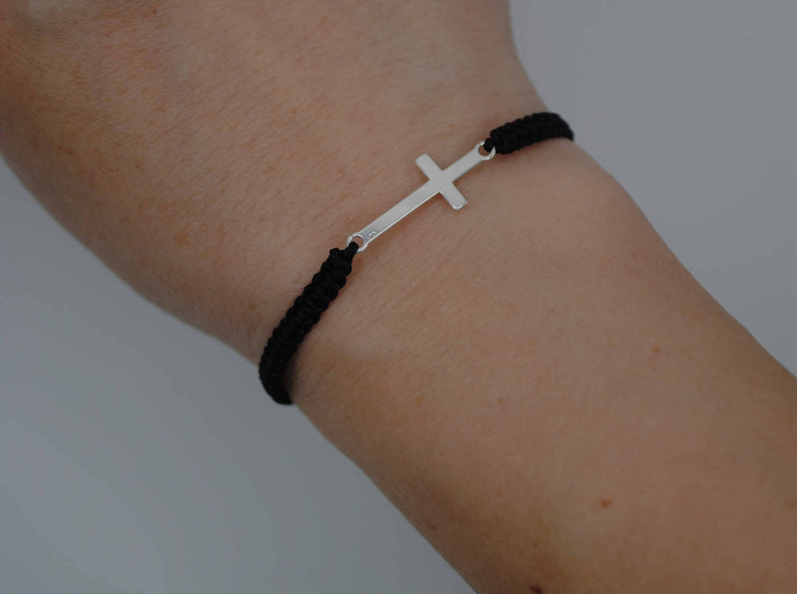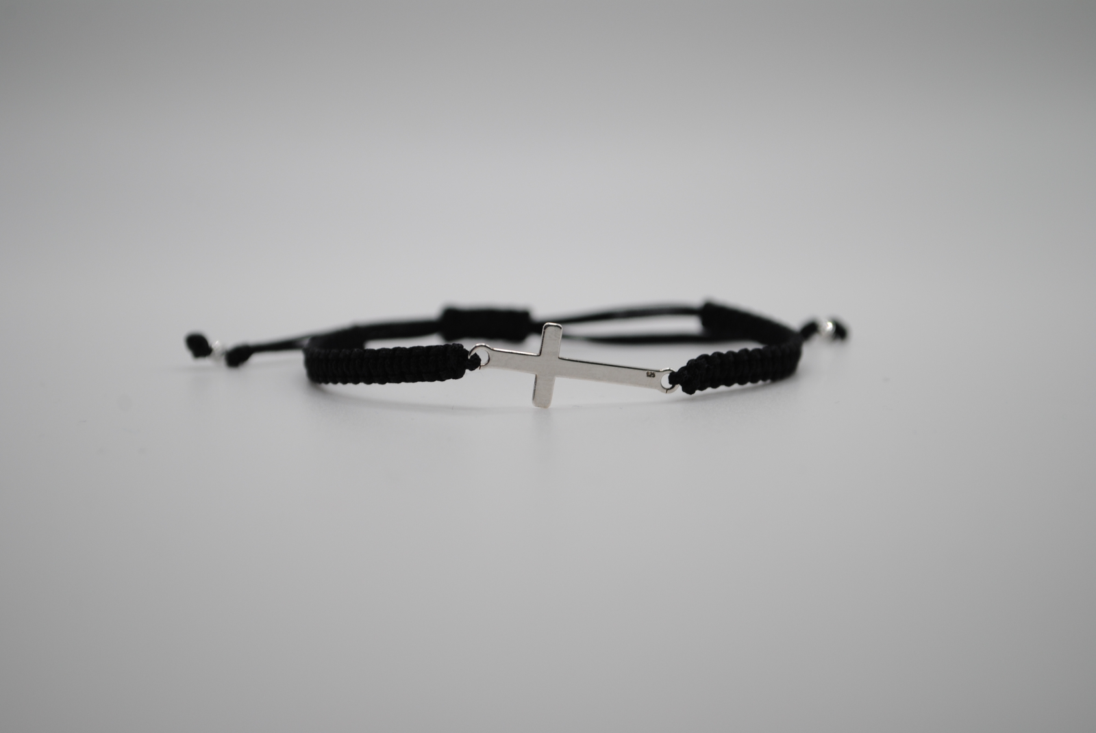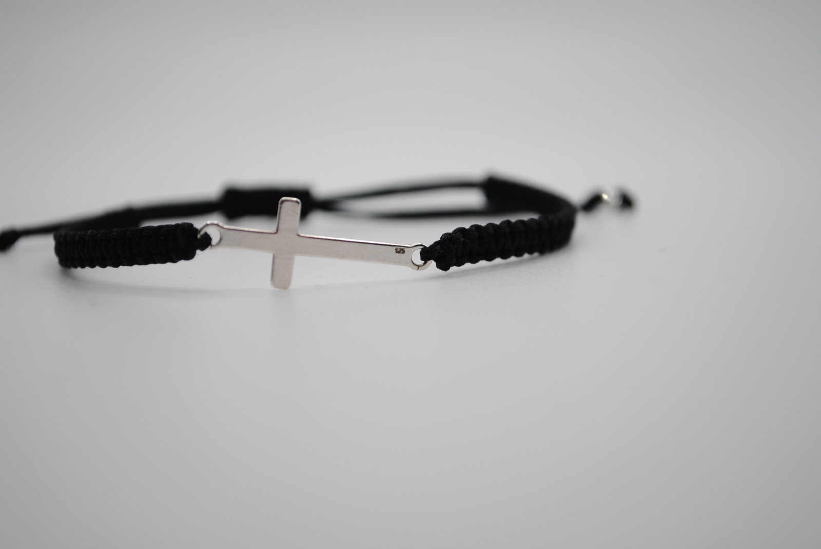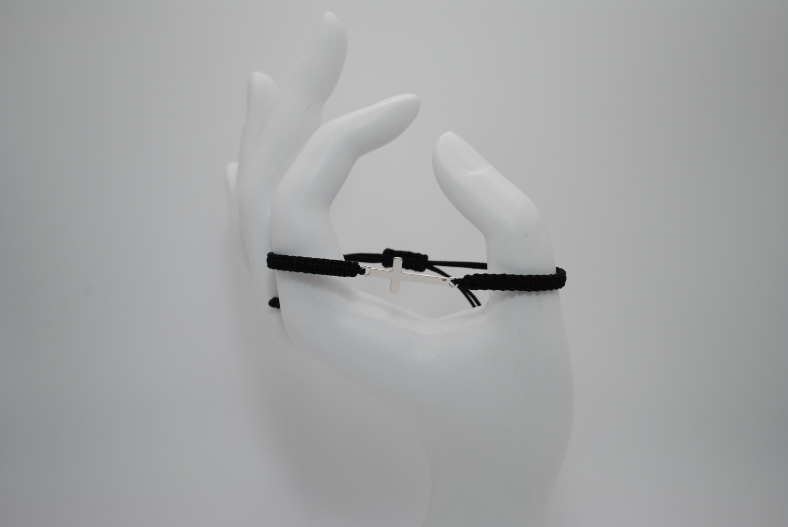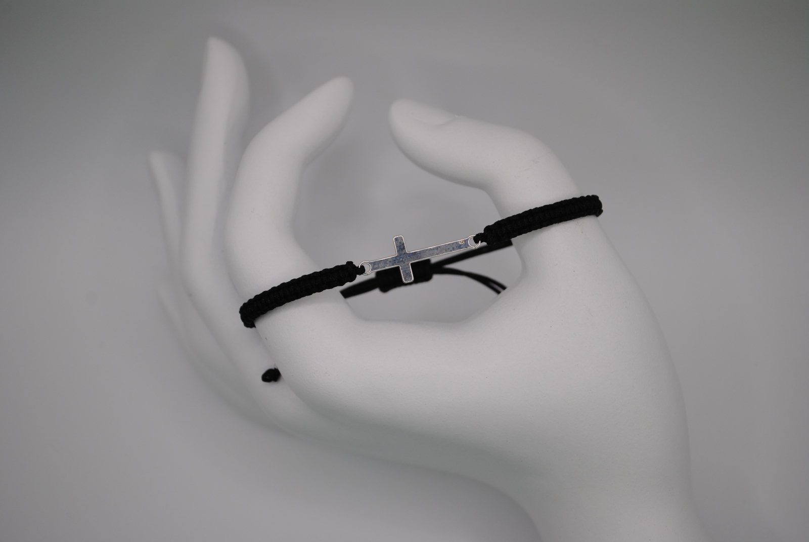 Această brățară este realizată manual, din snur negru de calitate superioară, împletit simplu pentru un aspect curat și discret. În centrul compoziției se află o cruciuță din argint 925, simbol al credinței și protecției, flancată de biluțe fine din argint 925 de 2,5 mm, care adaugă un accent subtil și elegant.