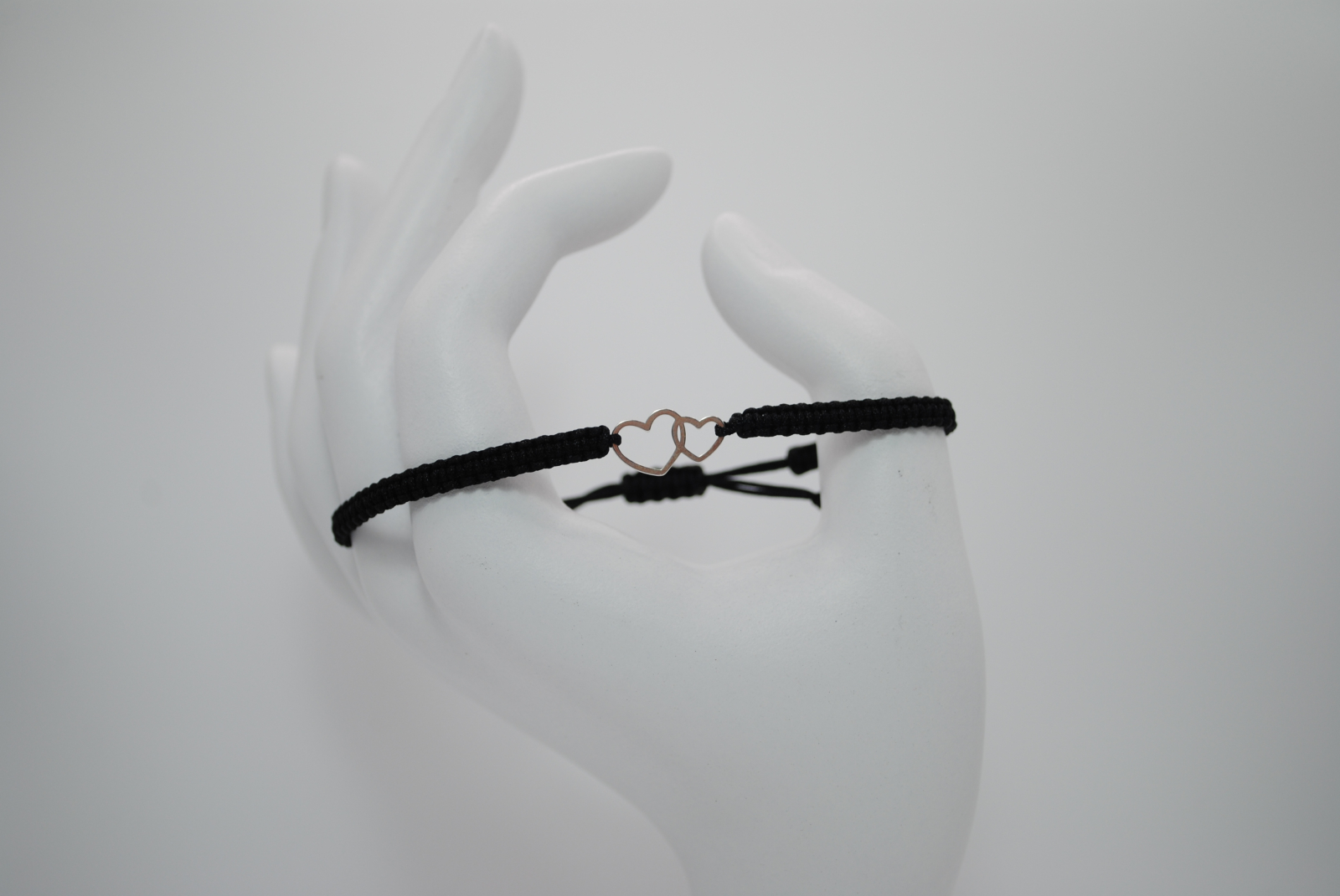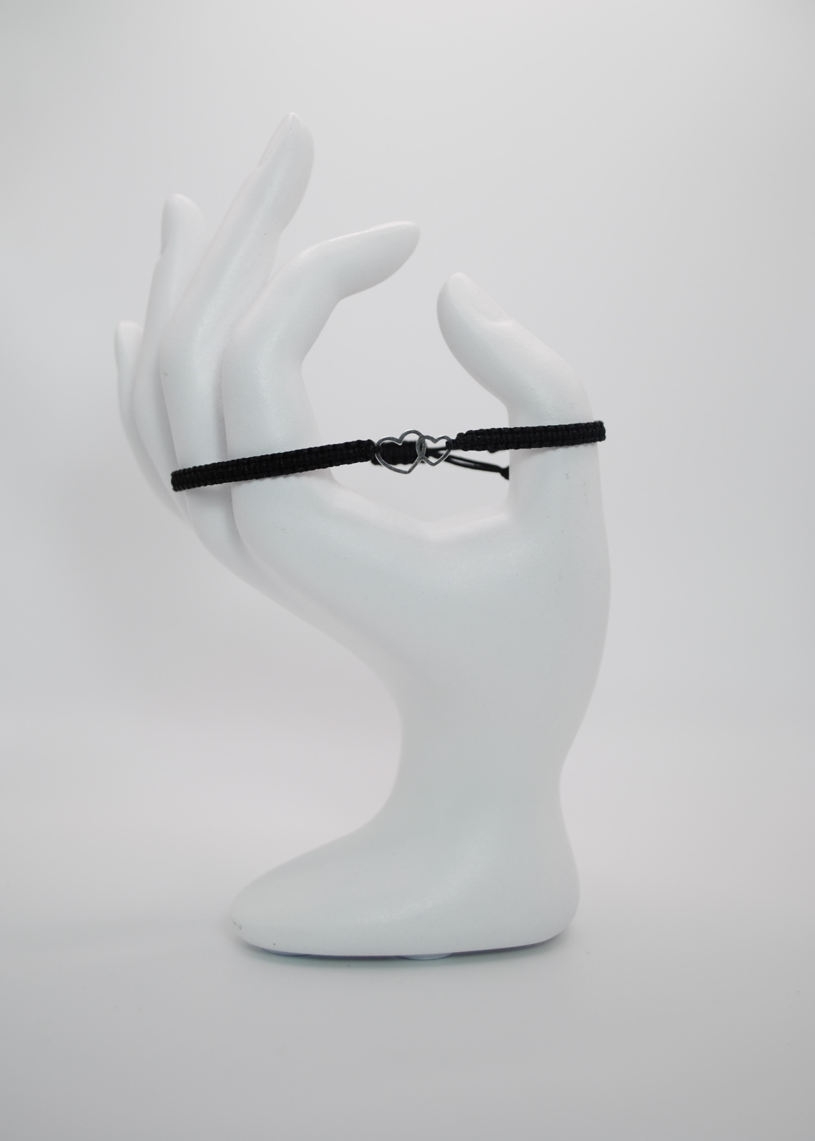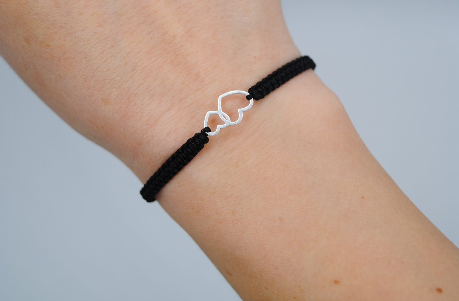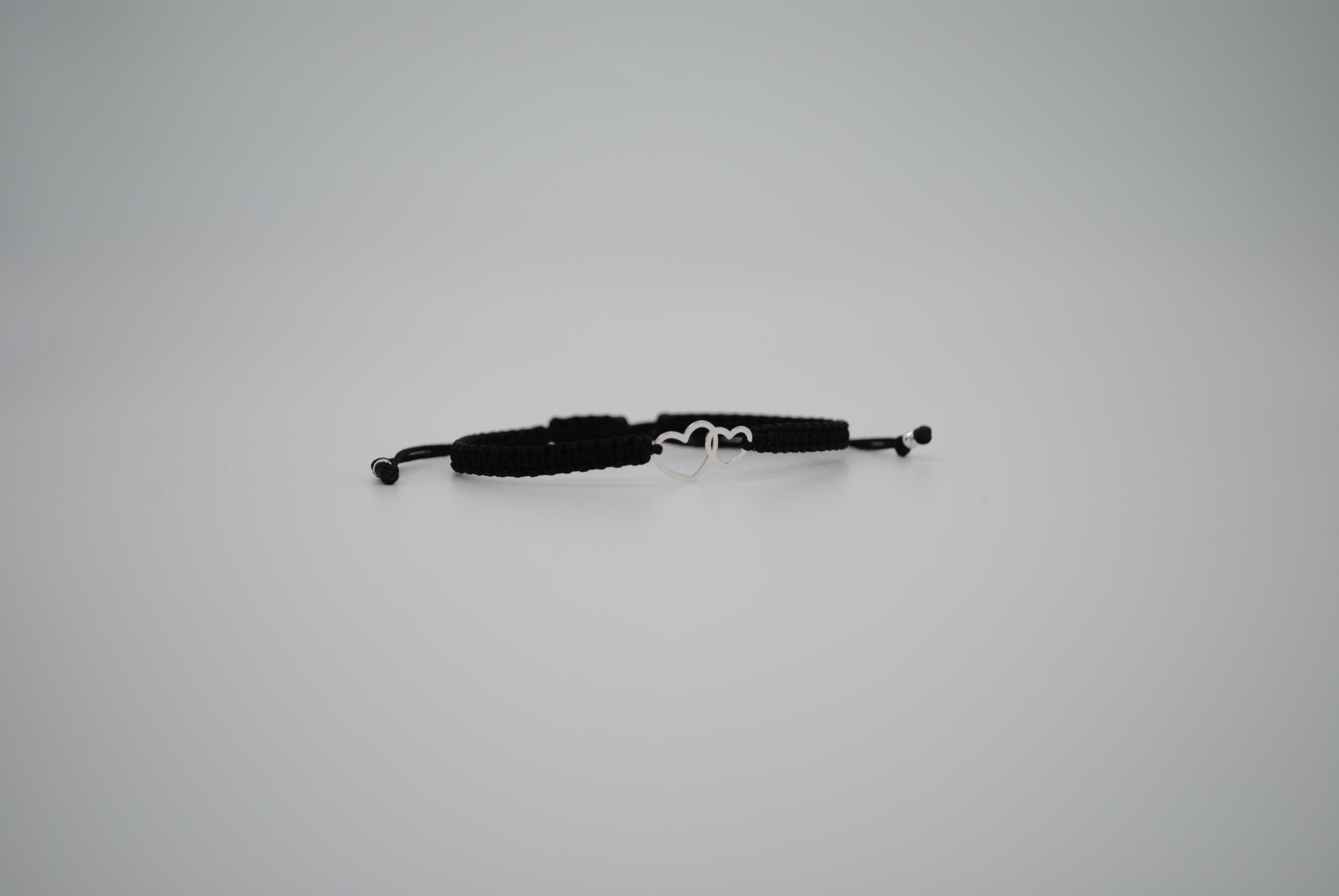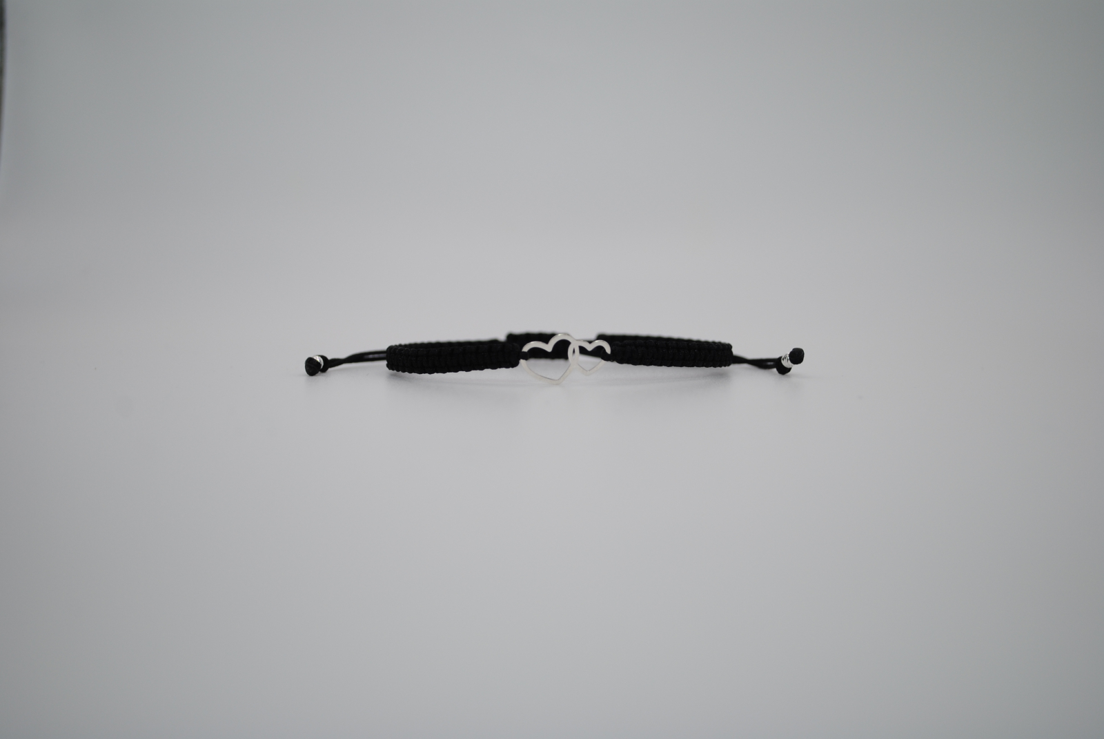 Această brățară este realizată manual din snur negru de înaltă calitate, finisat cu grijă pentru confort și durabilitate. În centru se află un element decorativ din argint 925 sub forma a două inimi unite, simbol al legăturii profunde, al iubirii și al armoniei. La capete, două mărgeluțe din argint 925 de 2,5 mm completează designul cu o notă discretă de strălucire.