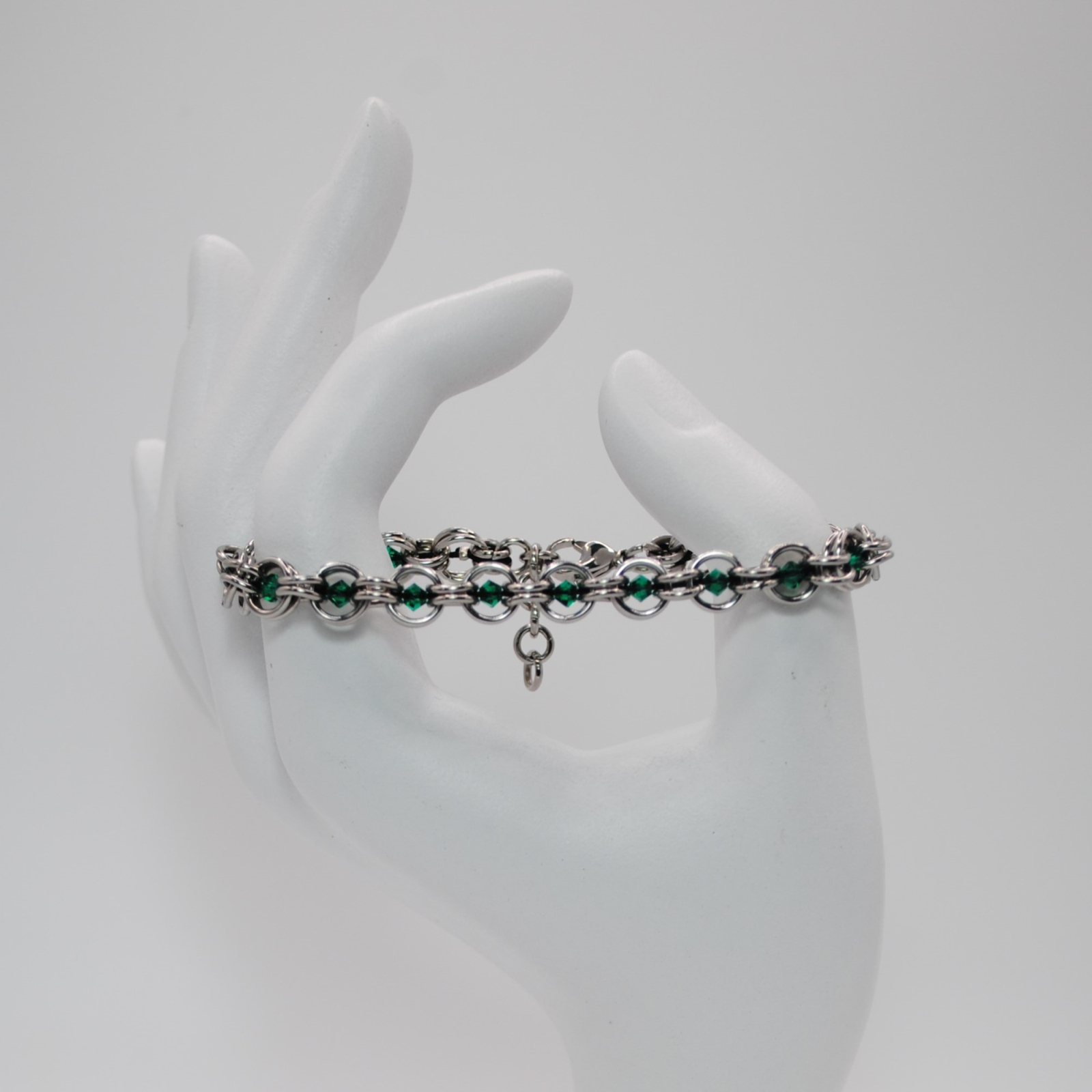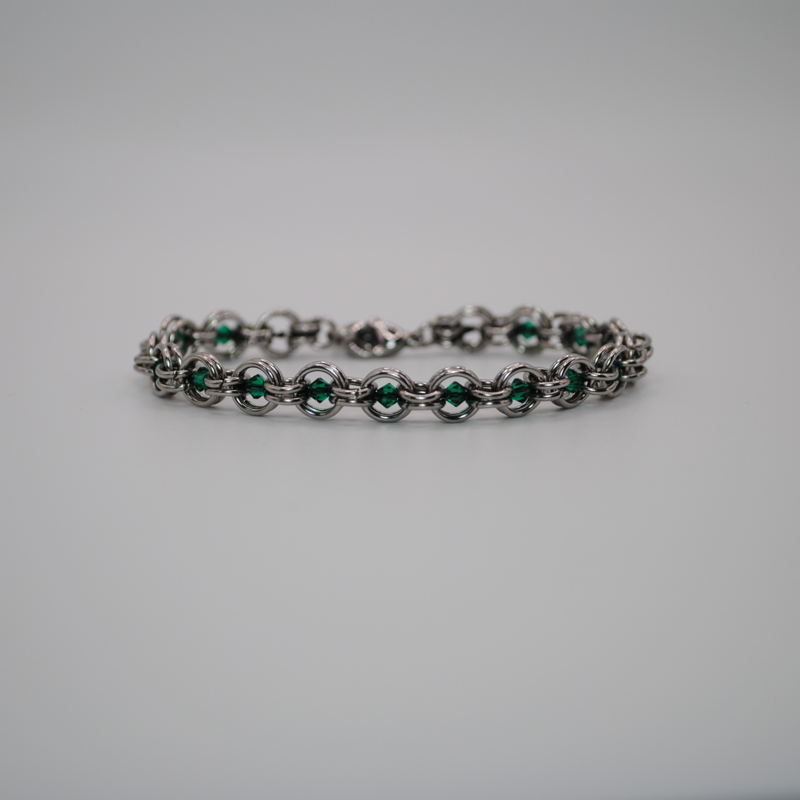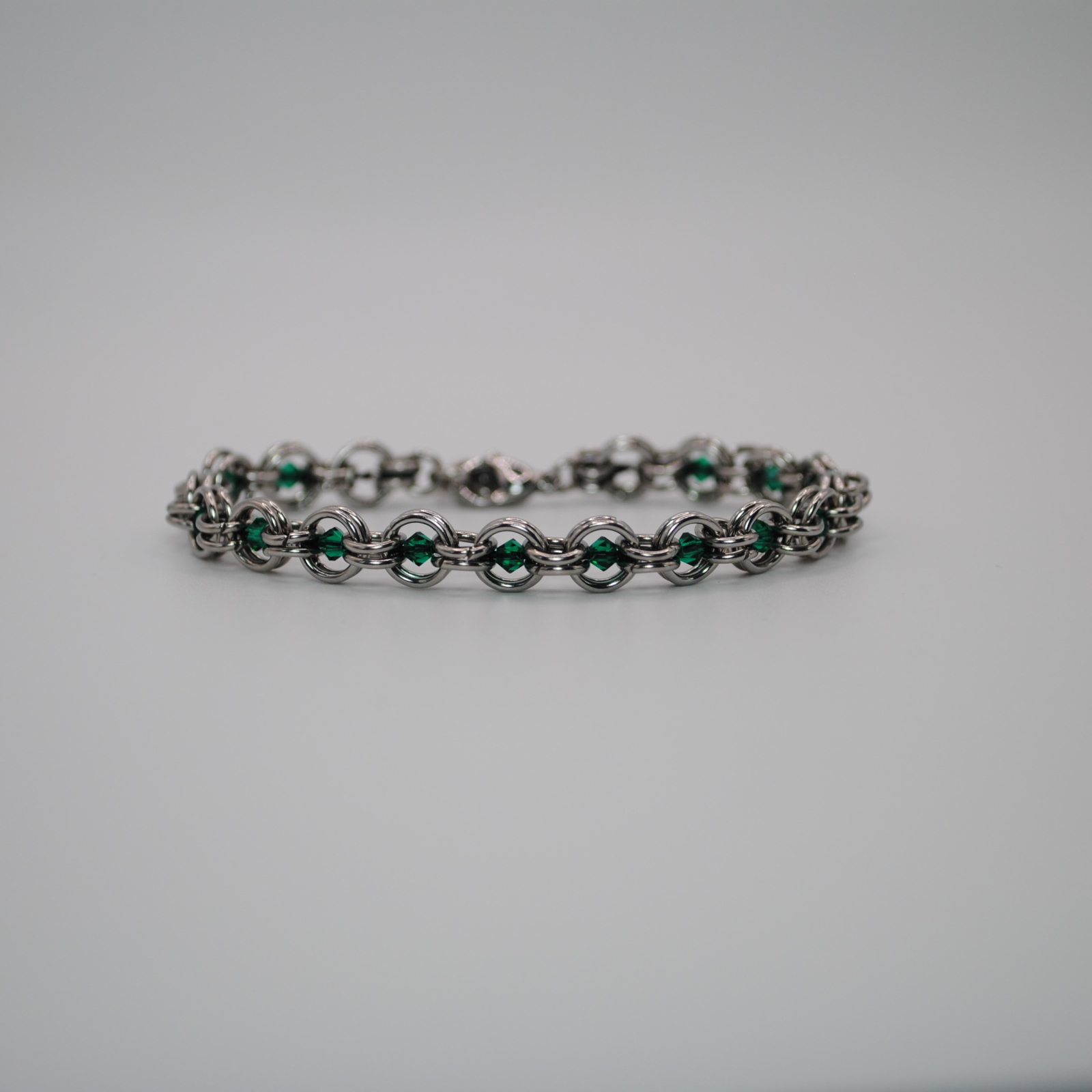 Brățară Green Glow – chainmaille handmade din oțel inoxidabil și cristale Preciosa emerald