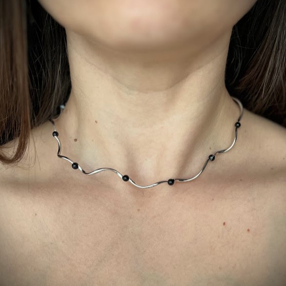 Colier Wave Noir – Eleganță fluidă și contrast rafinat